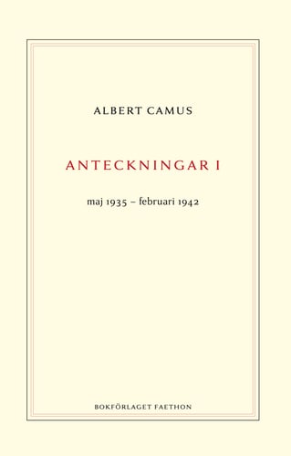 • Hela sitt vuxna liv använde Albert Camus anteckningsboken som övningsplats för tankar, känslor och litterära projekt. Hans samlade anteckningar utgörs av idéer och möten, korta anekdoter och längre utkast om vartannat, men med konstant pregnans och precision. I början av Anteckningar 1 är det en ung och oetablerad författare som håller i pennan. I slutet har han både Främling­en och Myten om Sisyfos bakom sig. Anna Säflund-Orstadius har grundligt reviderat sin tidigare översättning mot nya kritiska utgåvor av den franska texten. Jan Stolpe har skrivit noterna.