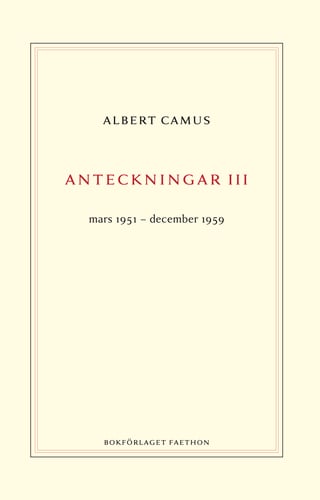 Hela sitt vuxna liv använde Albert Camus anteckningsboken som övningsplats för tankar, känslor och litterära projekt. Hans samlade anteckningar utgörs av idéer och möten, korta anekdoter och längre utkast om vartannat, men med konstant pregnans och precision. I Anteckningar 3 gör Camus bland annat resor till Italien och Grekland, mottar Nobelpriset och skriver Människans revolt och Fallet.Jan Stolpe och Anna Säflund-Orstadius har tillsammans översatt detta tredje aldrig tidigare pa svenska utkomna band. Jan Stolpe har försett boken med noter.