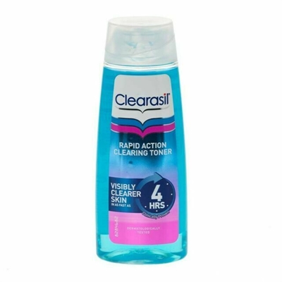En bra hudvårdsrutin består vanligtvis av rengöring och toning följt av kräm. Clearasil Toner Rapid Action 200ml lugnar, återfuktar och ger näring åt huden så att den blir mjuk och smidig och redo för efterföljande kräm. Kan användas för att avlägsna rester av rengöringsprodukt eller helt enkelt appliceras på rengjord hud med en bomullstuss.