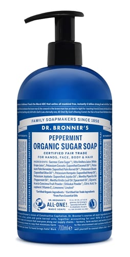 Vegan och ekologisk sockertvål i pumpflaska. Pepparmint. Våra 4-i-1 ekologiska pumptvålar är bra för att tvätta händer, ansikte, kropp och hår. Söt för kroppen och planeten! Rättvisemärkt och ekologiskt rörsocker ger våra Organic Pump Soaps en rik karamellfärg och en söt doft. Sockret kombineras med ekologisk vit druvjuice för att hålla din hud närd, återfuktad och smidig och är en naturlig exfoliator. Ekologiskt shikakai-pulver med lågt pH används traditionellt för hårvård i Indien och är skonsamt mot hårbotten och håret. Organiska kokosnöt-oliv- och hampoljor blandas för ett krämigt castilleskum och vår tvåltillverkningstradition! Användning: 4-i-1 organiska pumptvålar är bra för att tvätta händer, ansikte, kropp och hår och placera vid diskbänken eller i duschen! Det ekologiska shikakai-pulvret och det ekologiska sockret i denna tvål gör den lämplig för att tvätta håret. Tips! När den används som hårtvätt: Efter tvätten, följ upp med en lätt sur, vårdande sköljning. Det återställer hårets naturliga pH-värde och lämnar håret silkeslent. Fördelar:SugertvålPepparmyntsdoftFör händer, ansikte, kropp och hårOrganisk