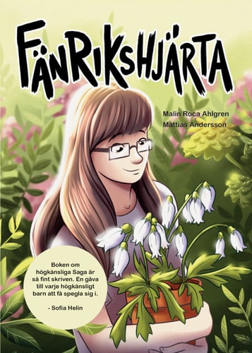 • Saga är 12 år, bor med sin pappa som jobbar mycket och inte förstår henne. Han tycker att hon inte ska grubbla så mycket, inte gråta så mycket och bli lite tuffare. Så som han själv är. Pappa vill bara Sagas bästa, men Saga är som hon är. Hon är högkänslig, hon tänker mycket och tycker själv att hon kan se och förstå det osagda. Hon får höra att hon är cool som kan läsa tankar men själv tycker hon mest att det är jobbigt att veta om allas problem. Mest av allt skulle hon bara vilja fokusera på Henry, men han är förmodligen inte intresserad av henne för Elsa går ju i klassen och alla killar gillar Elsa. Saga tyr sig till sin farmor, som förstår henne. Trots två generationer mellan dem, är de bästa vänner. Jag kan se saker. Höra saker. Jag kan känna de rädda och ledsna tankarna som inte är mina. Jag kan se de varma känslorna, de som ni inte vågar säga att ni har. Jag kan höra tystnaden, det som ni inte säger. Jag tänker nog för mycket och småpratar för lite. Jag gråter också för mycket. Jag gråter när jag blir arg, och när jag blir glad. Andra säger att jag är löjligt känslig, då skäms jag. Men farmor säger att det finns fler som jag. Jag tycker mycket om min farmor. Hon är min bästa vän. Farmor bor i en annan värld. En värld av dofter och färger. Varje tisdag åker jag till den. Jag älskar att kliva in i hennes värld. ”Fänrikshjärta” handlar om att gå i skolan och vara en av de känsliga eleverna. Om att högkänslig inte är samma sak som överkänslig, utan bara en spegling av hur samhället ser på utåtriktade personer. Boken är tänkt som ett stöd till lugna tänkande ungar som känner mycket och till deras familjer samt till skolpersonal. Detta är en viktig bok som tydligt beskriver hur världen kan upplevas ur ett högkänsligt barns perspektiv. Författaren beskriver hur det snabbt kan vända när vi ser till att ha människor omkring oss som stöttar oss, och som vi kan prata med. Sagas relation till sin farmor är också väldigt fin speciellt hur hon beskriver känslor som som något som går över. Boken innehåller känslohantering, kunskap om känslor och hur de fungerar. När barn (och därmed föräldrar) tidigt förstår att vi alla är olika kan vi skapa en värld bortom normalitet där vi alla får vara mer av de vi verkligen är och använda våra särskilda förmågor som gåvor istället för att se dem som hinder. /Malin Sandell, www.hogkanslighet.se