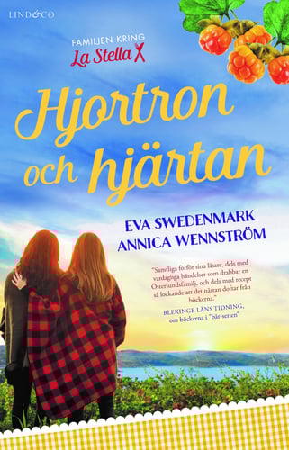 Livet för familjen kring restaurang La Stella i Östersund står aldrig stilla. Hjortronen blommar på fjällmyrarna, de gyllengula bären börjar snart mogna, men med hösten kommer förändringar. Varför längtar Mario bort till nya utmaningar när allt går så bra? Hur kommer det sig att Liselotte, som lever med en ny man efter den uppslitande skilsmässan, ändå dras till nya äventyr? Hennes föräldrar Anita och Börje är nyförälskade men ska de verkligen bli förnöjsamma pensionärer och bara rulla på i gamla spår? Och borde inte Linda vårda relationen med Anders istället för att tråna efter en vacker fjällguide? Marios och Liselottes dotter Sandra ser klarögt på de vuxna omkring sig, hur deras relationer bryts och byts. De verkar oförmögna att ta ansvar. Bland hjortronmyrar och fjäll växer en tanke på långsiktighet fram hos henne. När de alla samlas i Åre måste de möta sanningarna om sig själva. Vilka de är, vilka de trodde att de var, och se varandra med nya ögon utan att vara rädda för konsekvenserna. Hjortron och hjärtan är den femte delen av den populära serien som tog sin början i Smultron och svek och sedan fortsatte med Vinbär och vemod, Hallon och hat samt Lingon och lust (återutgivna i pocket på Lind & Co, 2017). EVA SWEDENMARK och ANNICA WENNSTRÖM har förutom romanerna i bär-serien även skrivit Det hemliga rummet (Lind & Co, 2018) tillsammans. Båda är också del av författartrion bakom pseudonymen Emma Vall, tillsammans med Maria Herngren Samtliga förför sina läsare, dels med vardagliga händelser som drabbar en O stersundsfamilj, och dels med recept så lockande att det nästan doftar från böckerna. Blekinge Läns Tidning, om böckerna i bär-serien