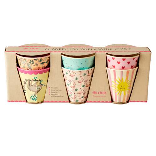 Rice - 6 st små melaminmuggar för barn - Multi Funky Print