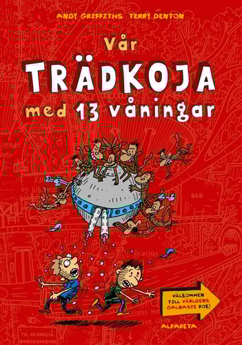 • 0% vardag och massor av fantasi i ny skruvad serie, såld i mer än en miljon exemplar.Tänk om man kunde bo i en trädkoja! Och tänk om trädkojan hade 13 våningar, en bowlingbana, pool, akvarium med hajar, självbäddande sängar, ett hemligt underjordiskt laboratorium, lianer att gunga i, ett bibliotek fullt med serietidningar, och en automatisk marshmallowkanon som följde en vart man än gick och fyrade av marshmallows i ens mun så fort den kände av att man var hungrig.Andy och Terry bor i precis en sådan koja och de gör böcker tillsammans. Böcker om två killar som bor i en trädkoja med 13 våningar och gör böcker om helt knäppa äventyr. För VADSOMHELST kan hända i en trädkoja med 13 våningar. Grattis Sveriges ungar, skrev Martin Widmark i en krönika från Australien. Han hade då precis upptäckt serien och fått reda på att den snart skulle översättas till svenska. Andy Griffiths och Terry Denton kommer från Australien. Deras serie om trädkojan har gjort succé i alla länder den hittills kommit ut och den är såld till 15 länder."Tramsiga i ordets bästa bemärkelse. De är roliga och absurda och väldigt lättlästa." Åsa Larsson i Malou efter tio
