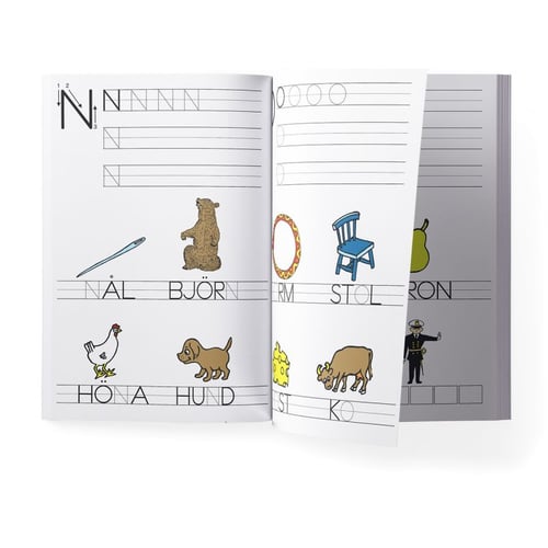 Lär dig läsa och skriva på ett pedagogiskt sätt med de klassiska skolboksbilderna av Ingrid Vang Nyman. Anvisningar hur varje bokstav skrivs med tillhörande övningar. Finns även med siffor, 1-10, “Vi kan räkna från 1 till 10″